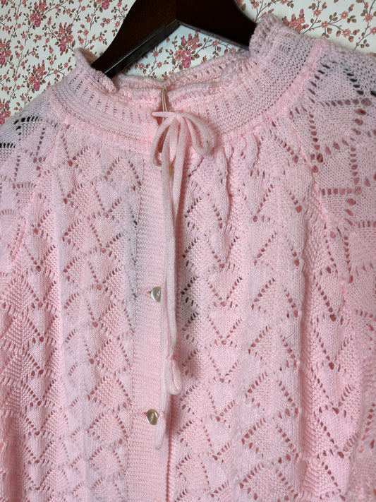 Vintage 1950s Pink Knitted Cardigan with Tie Up Neck