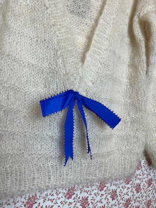 Vintage Handmade 1950s Deep V Mohair Knitted Jumper with Bow