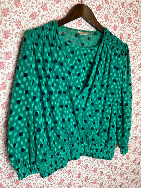 Vintage 1950s Blue and Green Spotted Wrap Top