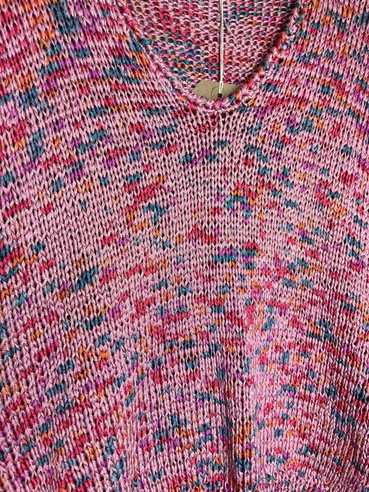 Vintage 1950s Style Hand Knitted Pink & Multi Jumper Top