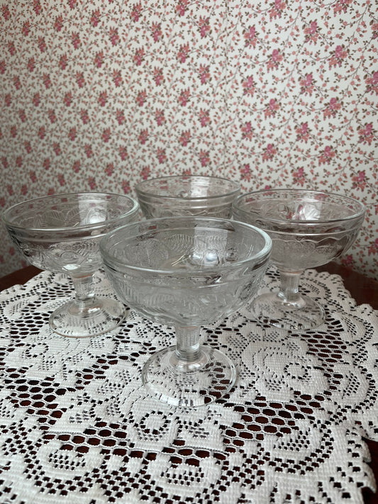Vintage 1950s Fruit Glass Dessert Bowls set of 4