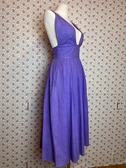 Vintage 1950s Hand Made Violet Plunge Fit & Flare Midi Dress