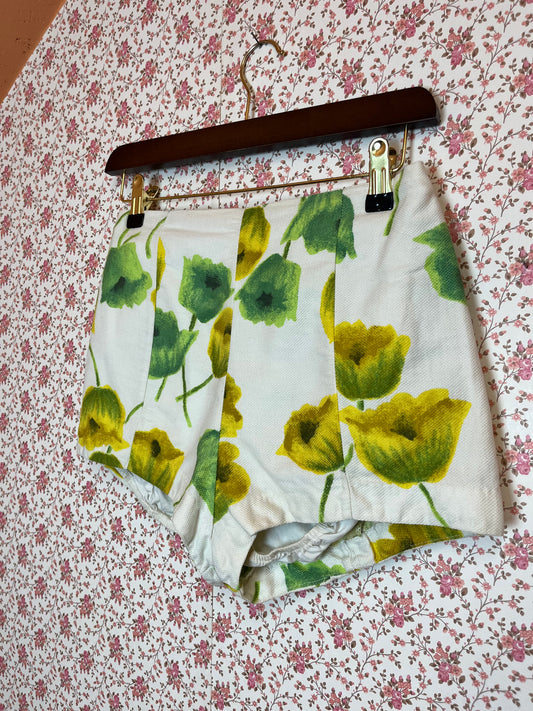 Vintage 1950s Hand Made Floral Brocade Blue & Green Bardot Mini Dress