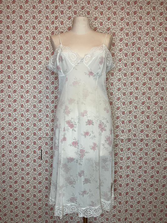 Vintage 1950s Sheer Lace Trim Slip Dress