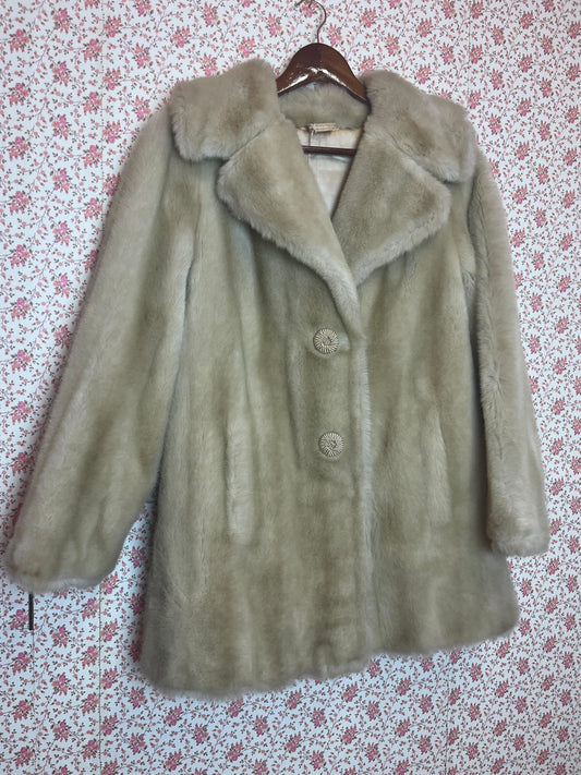 Vintage 1960s Tissavel Champagne Faux Fur Short Coat