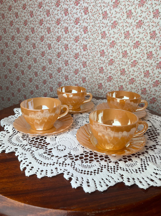 Vintage 1960s Termocrisa Lusterwear Tea Cups & Saucers set of 4