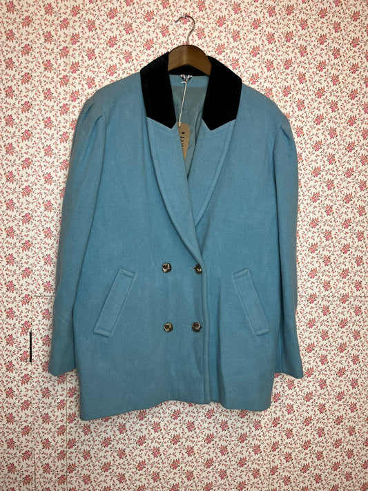 Vintage 1960s Periwinkle Blue Double Breasted Peacoat with Velvet