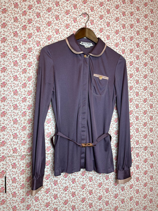 Vintage 1960s Jersey Double Collar Long Sleeve Shirt with Belt