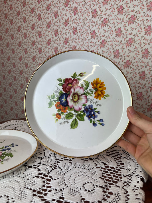 Vintage 1960s Ironstone Peony Decorated Plates with Gold Gilt Set of 2