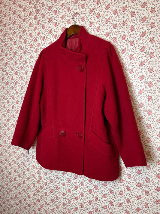 Vintage 1960s Funnel Neck Double Breasted Red Wool Coat