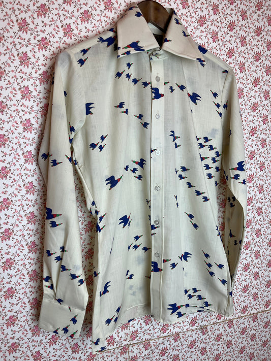Vintage 1970s SHAFT Bird Block Print Long Sleeve Shirt