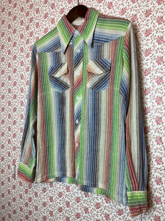 Vintage 1970s Rainbow Cotton Stripe Long Sleeve Shirt
