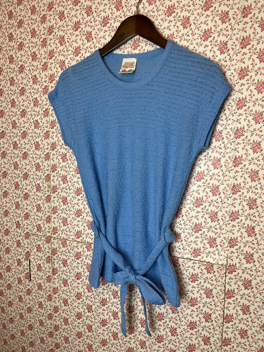 Vintage 1970s Blue Boucle Waist Tie Tee