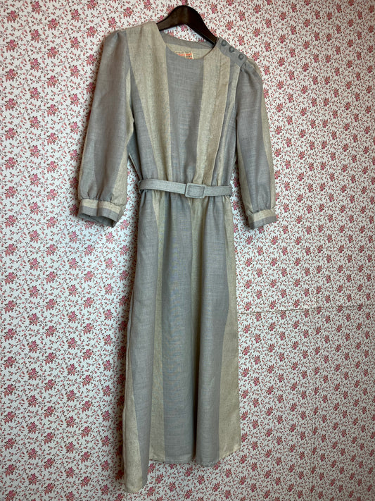 Vintage 1970s Richard Shops Striped Linen Blend Utility Dress