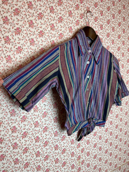 Vintage 1970s Indian Cotton Striped Tied Shirt