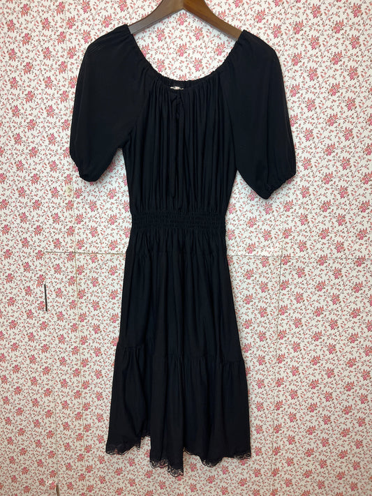 Vintage 1970s Black Tiered Bardot Midi Dress