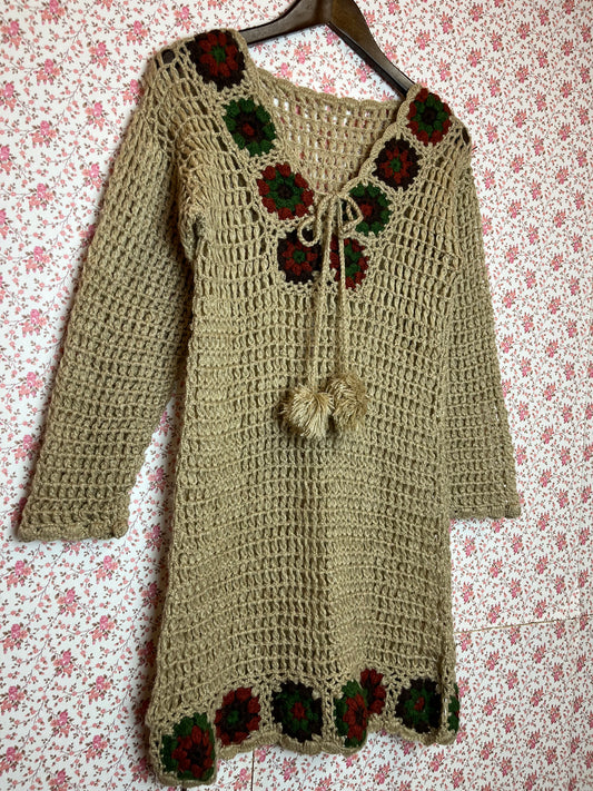 Vintage 1970s Hand Made Woven Tandk Shirt Dress