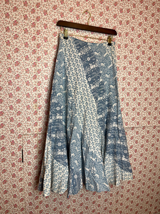 Vintage 1970s Hand Made Deer Print Maxi Skirt