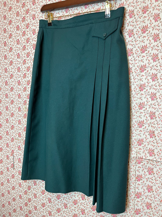 Vintage 1970s Dark Green Pleat Detail Midi Skirt