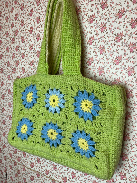 Vintage Hand Made Granny Square Shopper Bag