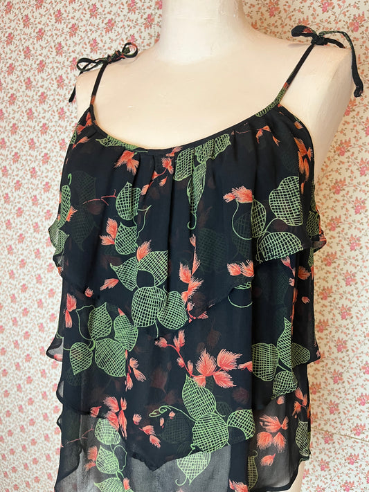 Vintage 1970s C&A Vine Printed Tiered Cami Top
