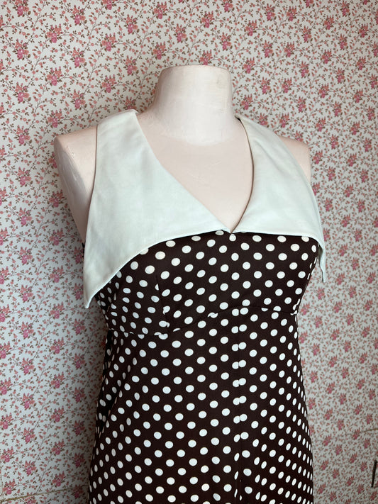 Vintage 1970s Kelly Arden Polka Dot Maxi Collar Dress