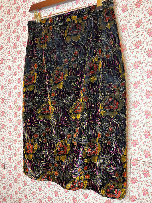 Vintage 1980s Multi Colour Floral Velvet Skirt