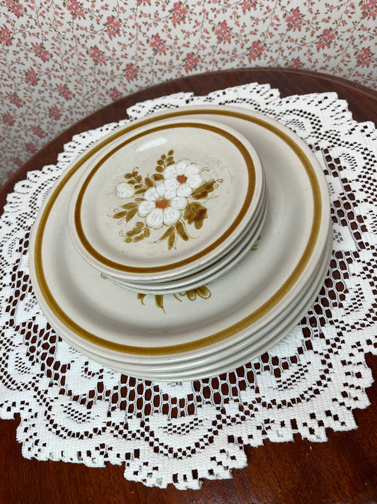 Vintage 1980s Mountain Wood Stoneware Plates Collection Set of 8