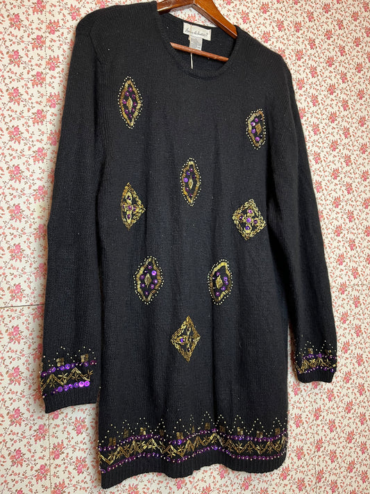 Vintage 1980s Silk & Angora Blend Embellished Jumper