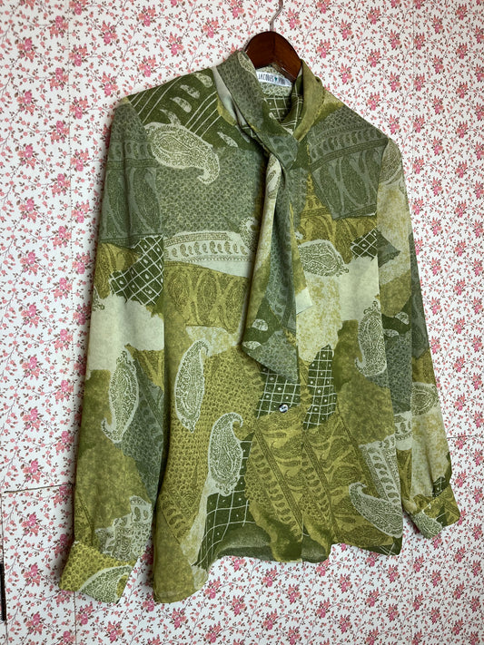 Vintage 1980s Jaques Vert Paisley Printed Shirt with Neck Tie Detail