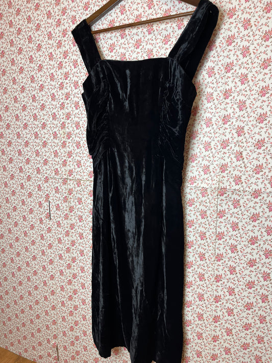 Vintage 1980s Frank Usher Velvet Black Square Neck Dress