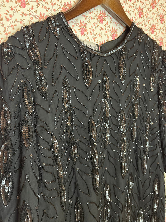 Vintage 1980s Beaded Sequin Embroidered Silk Top