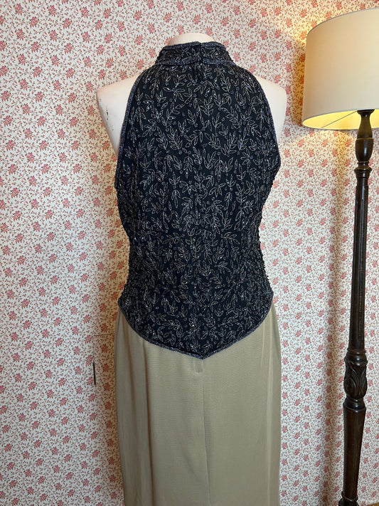 Vintage 1980s Beaded Embroidered High Neck Silk Top