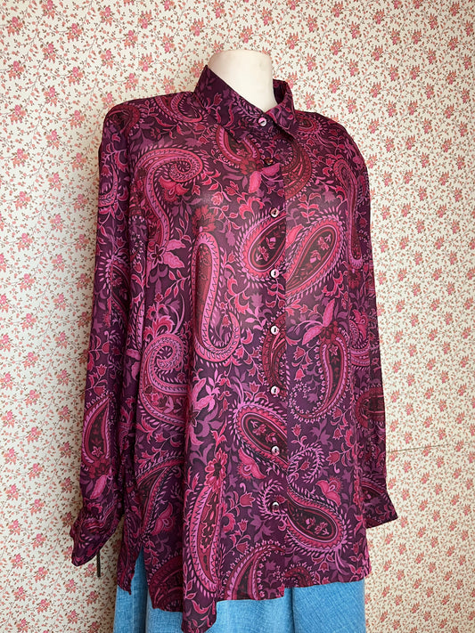 Vintage 1980s Pink Paisley Shirt with Shoulder Pads