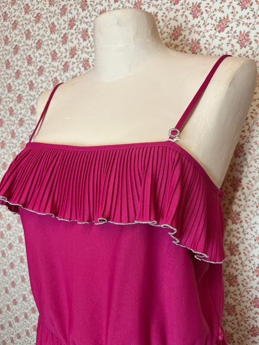 Vintage 1980s Hot Pink Frill Cocktail Dress