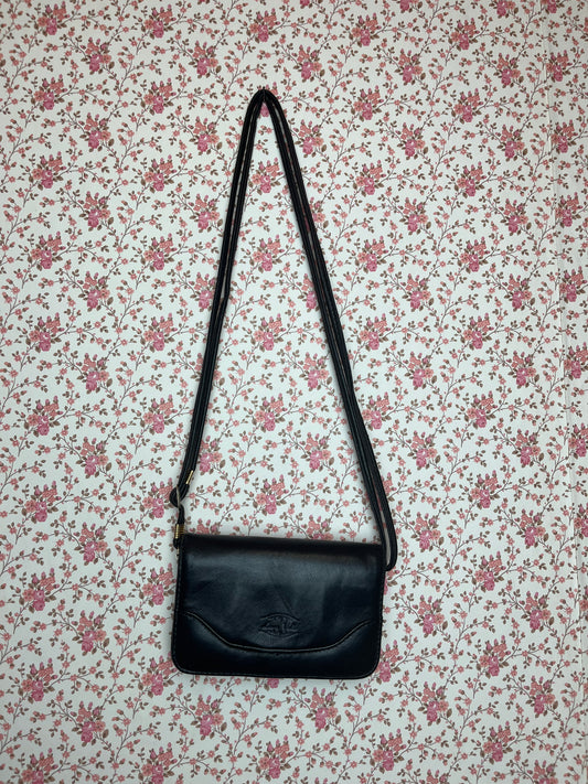 Vintage 1990s Black Leather Compartment Mini Crossbody Bag