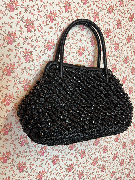 Vintage 1950s Black Beaded Handbag