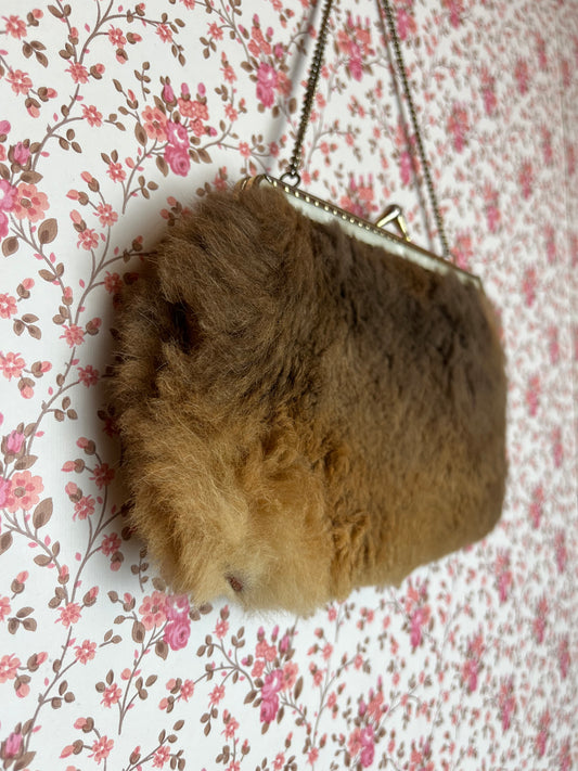 Vintage 1960s Fluffy Mini Bag with Silver Chain