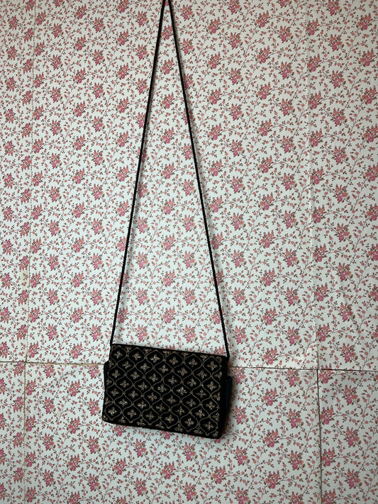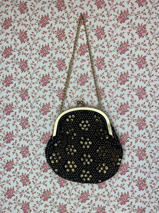 Vintage 1970s Black and Gold Embellished Evening Bag