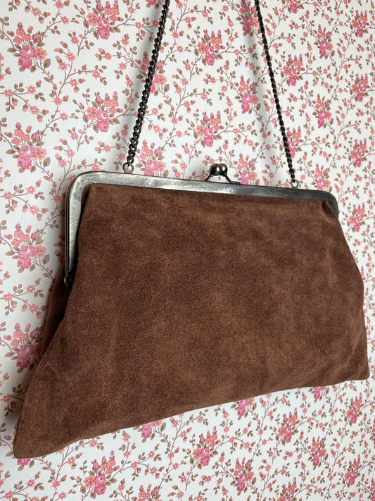 Vintage 1970s Brown Suede Shoulder Bag with Chain