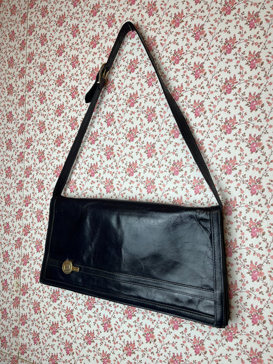 Vintage 1960s Dark Navy Leather Envelope Shoulder Bag