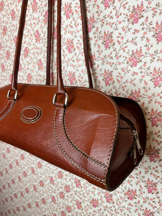 Vintage 1970s Brown Leather Baguette Bag