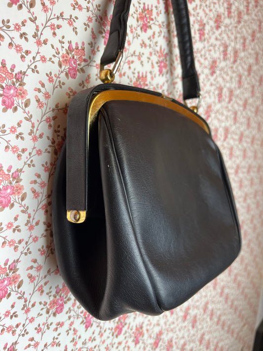 Vintage 1960s Black Leather Hand Bag