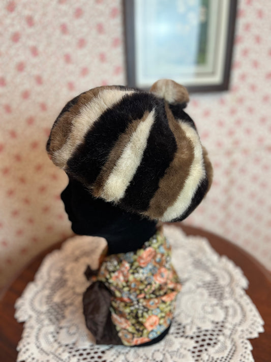Vintage 1960s Faux Fur Striped Hat