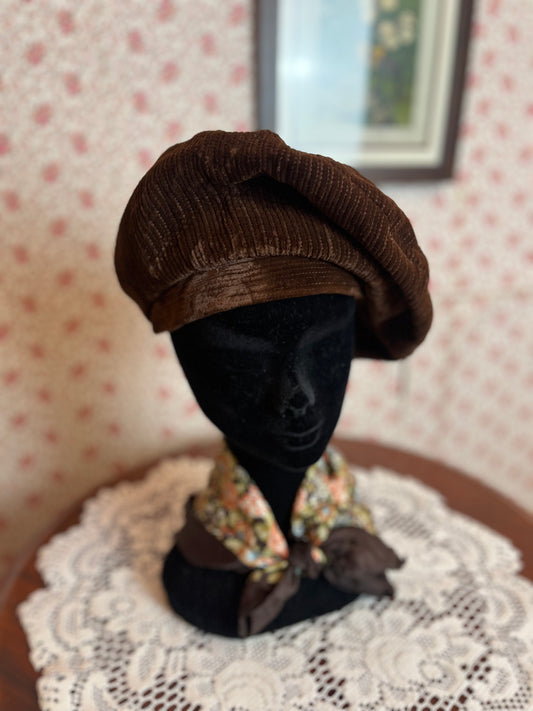 Vintage 1960s Brown Cord Beret