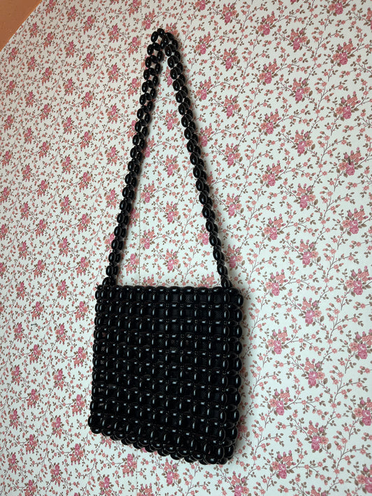 Vintage 1960s Black Beaded Shoulder Bag