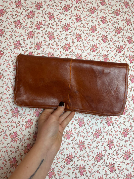 Vintage 1970s Brown Leather Folded Clutch and Handbag