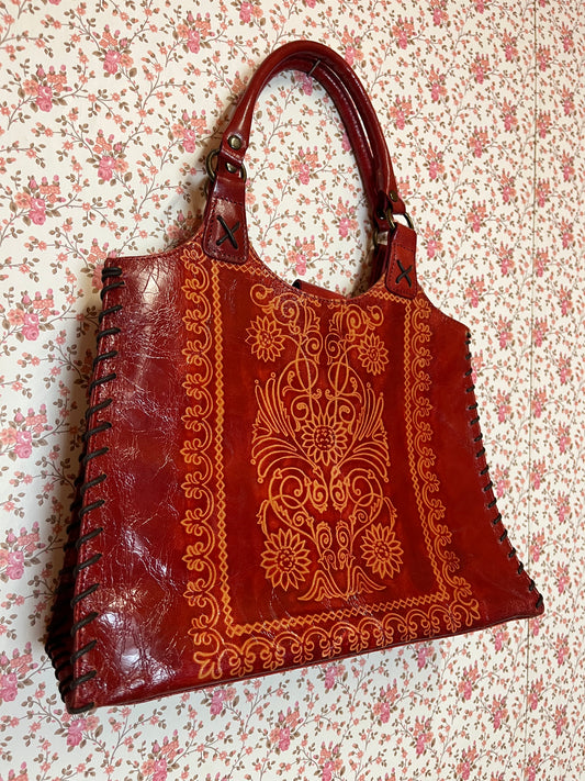 Vintage Laura Ashley Red Patent Leather Handbag with Stictching
