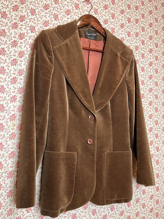 Vintage 1970s Brown Velvet Single Breasted Blazer