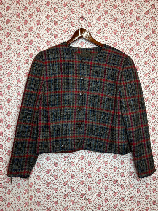 Vintage 1960s Style Wool Tweed Checked Cropped Blazer